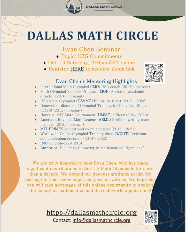 Dr. Evan Chen seminar on Oct. 19, 2024